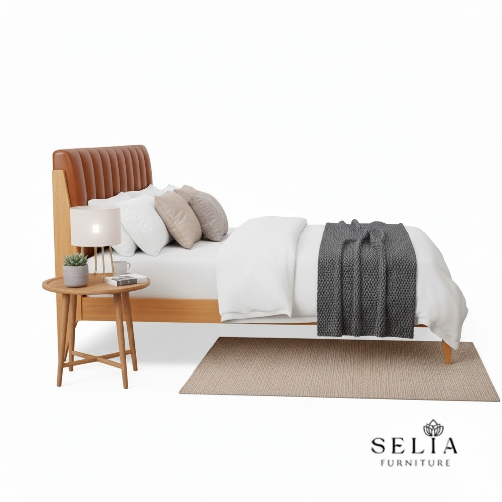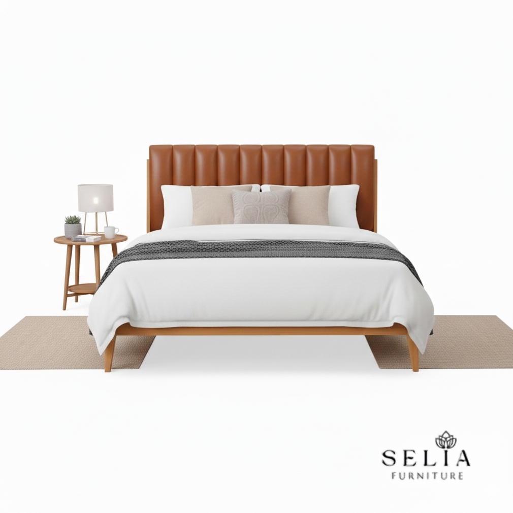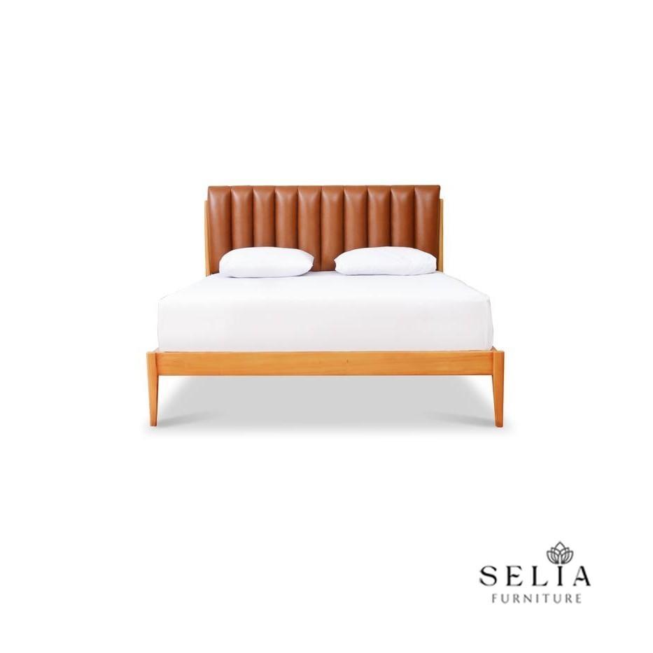 **Sara Bedframe** - Tempat Tidur Headboard Cushion Dipan Kayu Solid Jati Minimalis